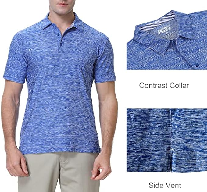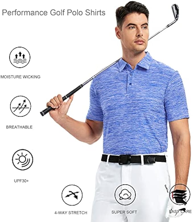 85% Polyester, 15% Spandex Imported Pull On closure Hand Wash Only Material: Our Mens Golf Shirts are made from 85%Polyester 15%Spandex, Light Weight, UPF40+, Quick Dry, Moisture Wicking, Soft, Breathable, Extremely comfy to wear the whole day. Can't beat the quality of this shirt. True US size: Fits true to size, based on US regular fit Golf Polo Shirt spec., The fit provides plenty of room for moving around yet they still have a fitted look. Fashion Style: The stripe trims on collar band provides a stylish and decent look, the light weight tech men's polo shirt dries rather quickly, just right for Spring, Summer and Autumn, Never feels sticky even on hot, humid days. Occasion: Excellent daily wear work polo,sports shirts,also works well for the new Work-From-Home normal, where you want an easy-wearing shirt with a collar for those Zoom calls. Besides a go-to work polo, it's also great to wear for golf shirt, hiking, and fishing, around the house. Ideal Gift for families and friends. Warm Tips: Our golf shirts for men last long and well made, great value. Easy to care for, fantastic coming out of the dryer, good enough to be a golf shirt or business casual.