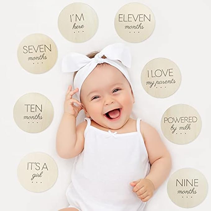Giftable: Whether you are looking for a baby shower gift or a gender reveal gift, our monthly milestone wood discs are an amazing choice. As an alternative to baby milestone blanket, baby milestone board, or baby milestone blocks, the newborn photography props are a must have.