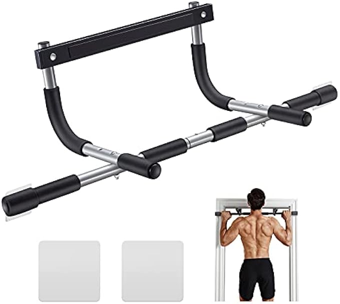 ? EASY TO USE DOORWAY PULL UP BAR: Portable design for home exercise pull-ups - can be mounted on any standard 24 "to 32" doorways, easy to install and install. Portable design easily fits on any standard doorway, and is simple to assemble and install. Door frame pull up bar uses leverage to hold against the doorway so there are no screws and no damage to door.(Note:If the item is missing parts,please don’t hesitate to contact us,we will send you it for free asap).