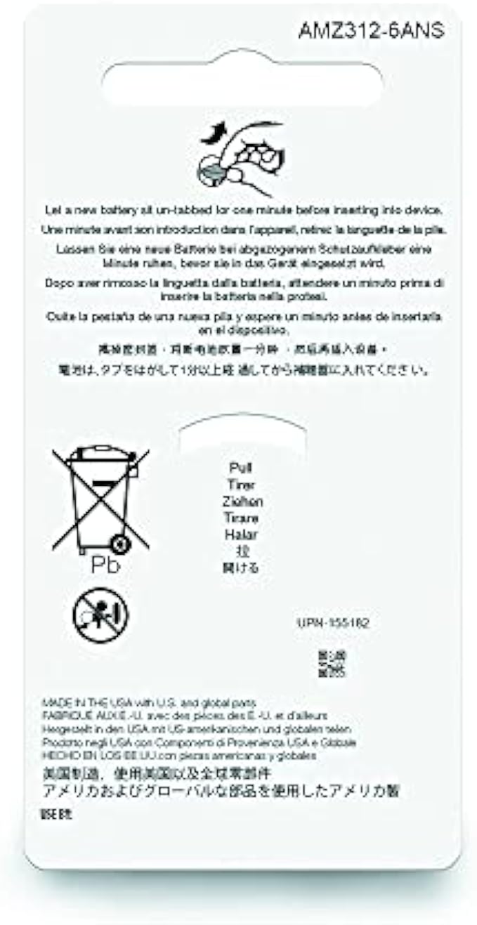 IN THE BOX: 60-pack of 1.45-volt hearing aid batteries (brown tab, size 312)