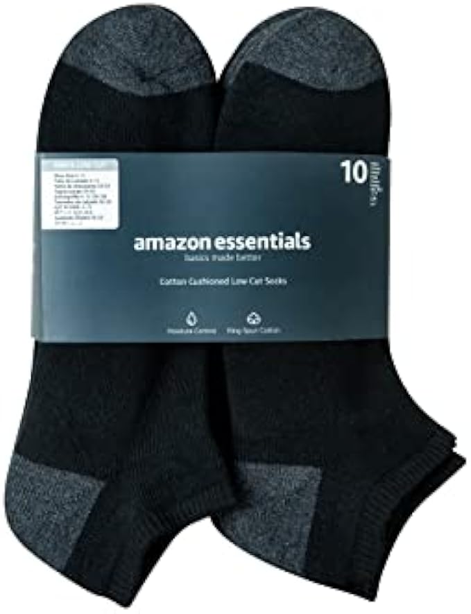 Amazon Essentials Men's Cotton Cushioned Low Cut Socks