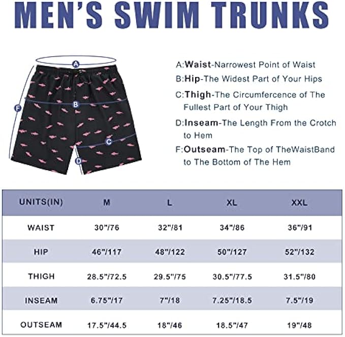 MULTIPLE CHOICE OF SIZES: We provide you with a variety of sizes of swim trunks men 5 inch, and beach shorts for men the material of the lining is very elastic, which not only protects your skin but will not cause any discomfort, three-dimensional cut, lining 5.5 inches,men swim trunks you can according to Choose the size that fits you.