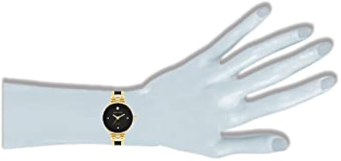 • Mineral crystal lens; Glossy black dial with genuine diamond at 12; Gold-tone hands and markers