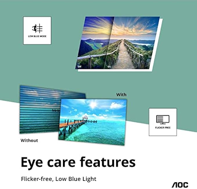 DESIGNED FOR YOUR WELLBEING: AOC LowBlue Light protects your eyes from harmful blue lights while maintaining color composition.