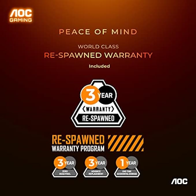 • RE-SPAWNED : 3-year zero-bright-dot, 3-year advance replacement, 1-year (one-time) accidental damage