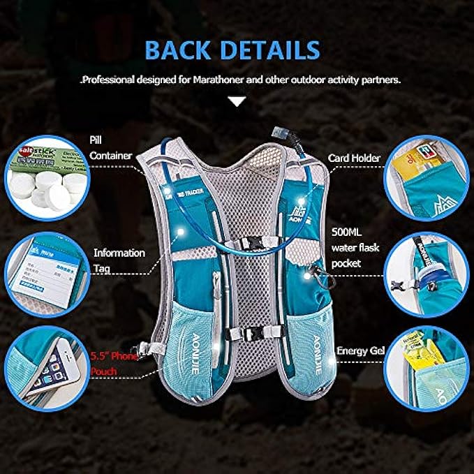 ?♂️Hydration System:Aonijie running vest compatible with 1.5L bladder (not included). Bite and Pull valve,quick release leak proof bladder connector.Water can be take it out easily when running. Convenient trail running backpack outfit.