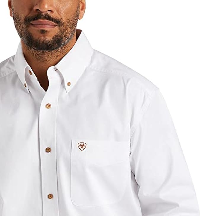 ADDITIONAL FEATURES: This shirt features a handsome button-down collar, button-down placket on the front, two-button adjustable cuffs, and a single patch pocket on the left chest sporting the Ariat logo embroidery.
