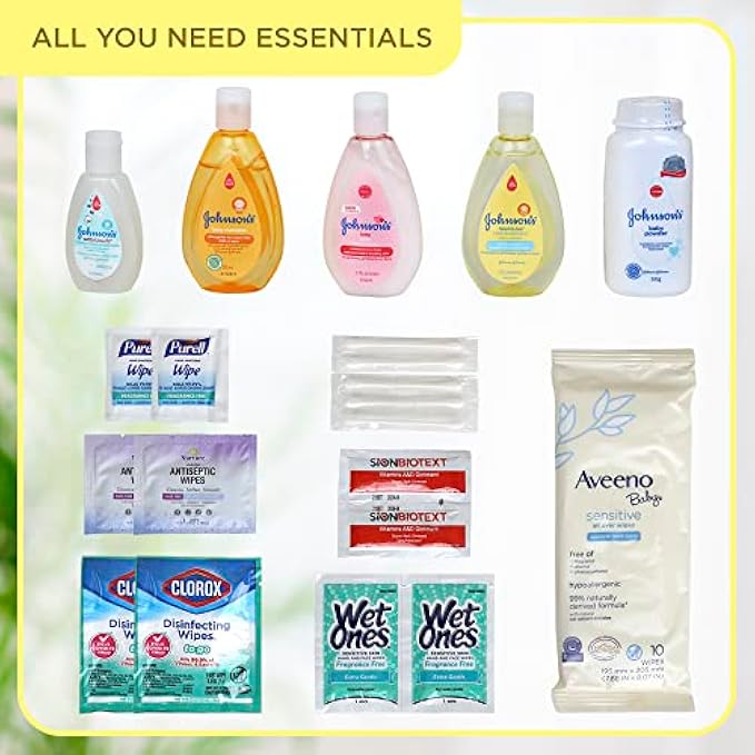 • BABY CARE TOILETRIES TRAVEL KIT - Includes bedtime bath soap, shampoo, lotion, wipes, rash cream, all TSA-compliant and conveniently packaged for hassle-free travel.