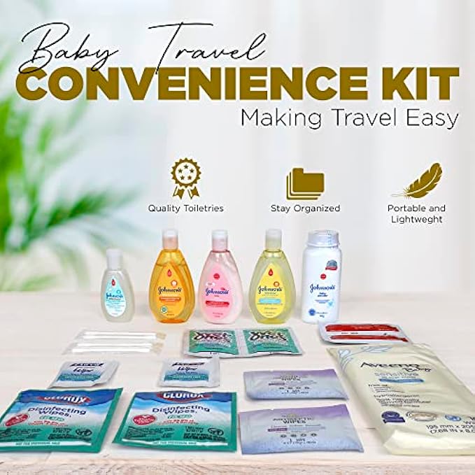 • BABY CARE TOILETRIES TRAVEL KIT - Includes bedtime bath soap, shampoo, lotion, wipes, rash cream, all TSA-compliant and conveniently packaged for hassle-free travel.