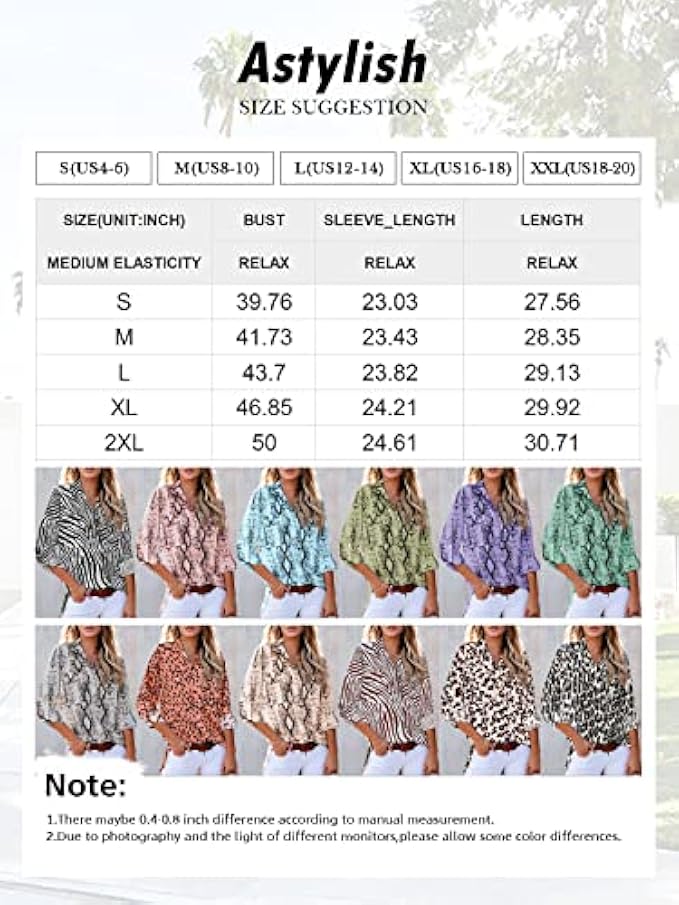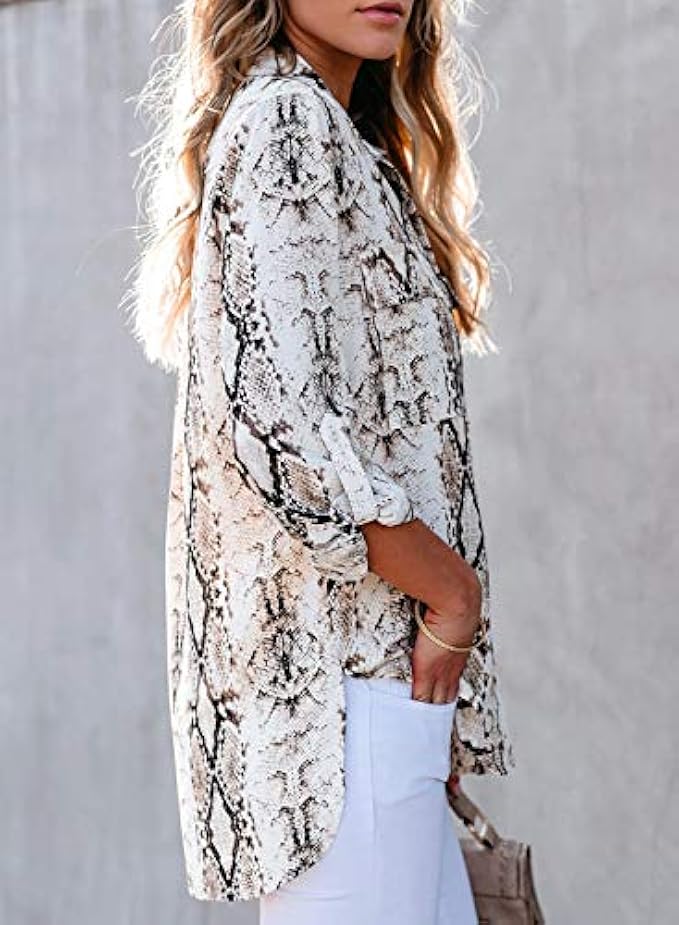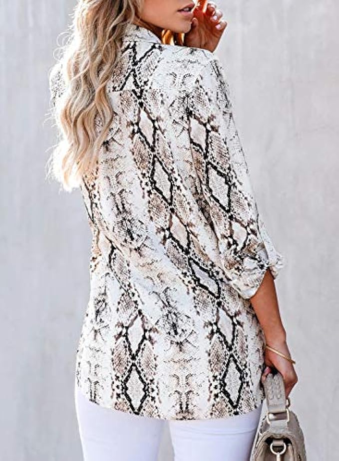 Astylish Women Button Down Snake Print 3 4 Tab Sleeve Tunic Blouse Tops Shirts