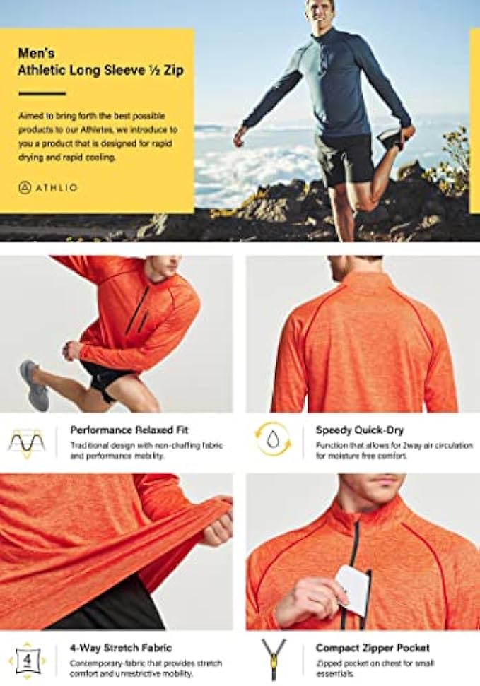 • ATHLIO Men's 1/4 Zip Workout Shirts designed for sports & outdoor activities.