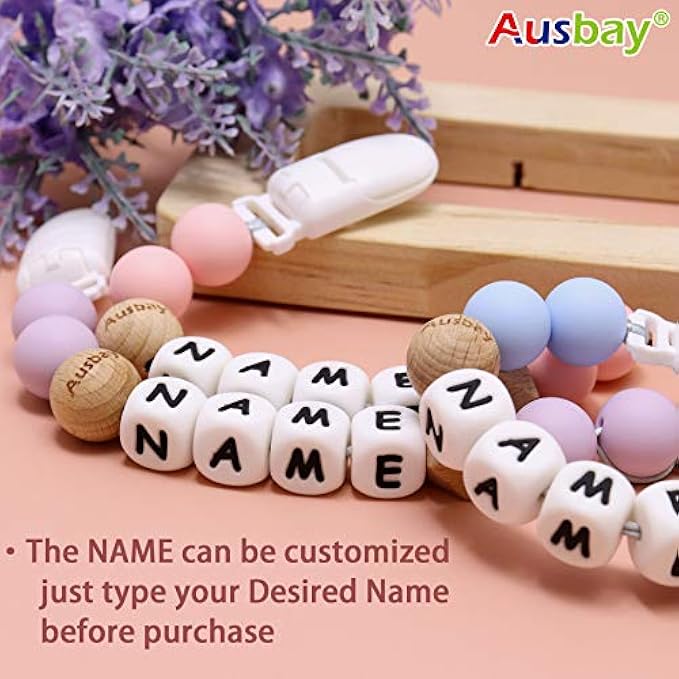 Ausbay Personalized Stroller Clip with Name, Unisex Baby Gifts for Newborn (Lilac)