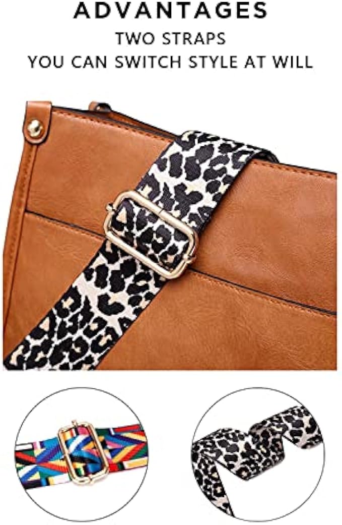 Imported ❤️【2-Pack Adjustable Guitar Straps】This crossbody handbags for women is equipped with 2 wide adjustable straps: 1 leopard strap + 1 rainbow strap, gold metal clip attachments, easily to be clipped to any womens crossbody bag. Using the most popular two guitar straps design and you can replace it. ❤️【Perfect Shoulder Bag Size】12.2" x 3.94" x 10.63" (L x W x H). The crossbody bag is a perfect size to fit most women! The size is fashionable and the vintage style makes it the perfect bag for so many different uses! Tons of pockets: 1 front open pocket with magnetic button (for your ipad), 1 back zipper pocket (for your cellphone), 1 main pocket ( for your magzine, umbrella, notebook, etc) & 1 zipper pocket and other two patch pockets inside(for your lipsticks, cards, keys, etc). ❤️【High-Quality Crossbody Bag】High quality vegan leather and thick fabric lining. Without any weird smell and totally environmentally friendly. Simple design, with gold tone hardware, smooth zipper, stain and fade resistant, ensuring you can enjoy an elegant rossbody bag for long time. ❤️【Shoulder Hobo Handbags Multipurpose】There are so many uses this bag can have! You can use it for work, traveling, shopping, dating, party, meeting and can also be used by new moms as a diaper bag! It is extremely soft, durable, and also vegan friendly! Two guitar straps cross body can be matched with all styles of clothes, showing the unique elegance and cuteness of women. ❤️【Why Choose US】We committed to provide our customers more valuable and practical products.To provide a better shopping experience and because of the high confidence on our lovely crossbody purse. If you're not satisfied or receive a defective product, please contact us immediately, we will provide you with satisfactory after-sales service.
