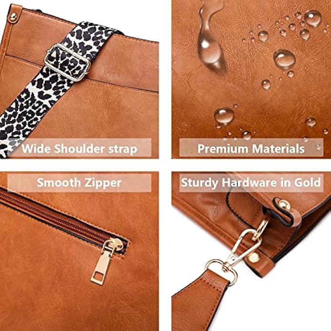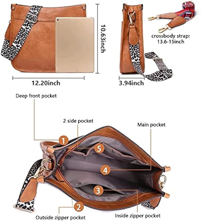 Imported ❤️【2-Pack Adjustable Guitar Straps】This crossbody handbags for women is equipped with 2 wide adjustable straps: 1 leopard strap + 1 rainbow strap, gold metal clip attachments, easily to be clipped to any womens crossbody bag. Using the most popular two guitar straps design and you can replace it. ❤️【Perfect Shoulder Bag Size】12.2" x 3.94" x 10.63" (L x W x H). The crossbody bag is a perfect size to fit most women! The size is fashionable and the vintage style makes it the perfect bag for so many different uses! Tons of pockets: 1 front open pocket with magnetic button (for your ipad), 1 back zipper pocket (for your cellphone), 1 main pocket ( for your magzine, umbrella, notebook, etc) & 1 zipper pocket and other two patch pockets inside(for your lipsticks, cards, keys, etc). ❤️【High-Quality Crossbody Bag】High quality vegan leather and thick fabric lining. Without any weird smell and totally environmentally friendly. Simple design, with gold tone hardware, smooth zipper, stain and fade resistant, ensuring you can enjoy an elegant rossbody bag for long time. ❤️【Shoulder Hobo Handbags Multipurpose】There are so many uses this bag can have! You can use it for work, traveling, shopping, dating, party, meeting and can also be used by new moms as a diaper bag! It is extremely soft, durable, and also vegan friendly! Two guitar straps cross body can be matched with all styles of clothes, showing the unique elegance and cuteness of women. ❤️【Why Choose US】We committed to provide our customers more valuable and practical products.To provide a better shopping experience and because of the high confidence on our lovely crossbody purse. If you're not satisfied or receive a defective product, please contact us immediately, we will provide you with satisfactory after-sales service.