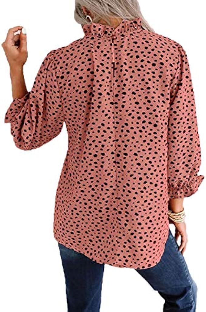 • [Feature]: Elegant blouse for women feature with fashion leopard print, 3/4 sleeve with ruffle hem, ruffle neck, keyhole back, frill mock neck shirt