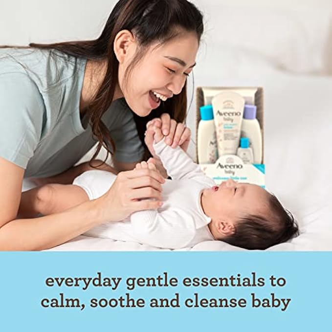 • Aveeno Baby Welcome Baby Gift Set contains 5 essential baby skincare products for baby's delicate skin. This everyday gentle essentials giftset includes products that are specially formulated to calm, cleanse & moisturize baby’s skin