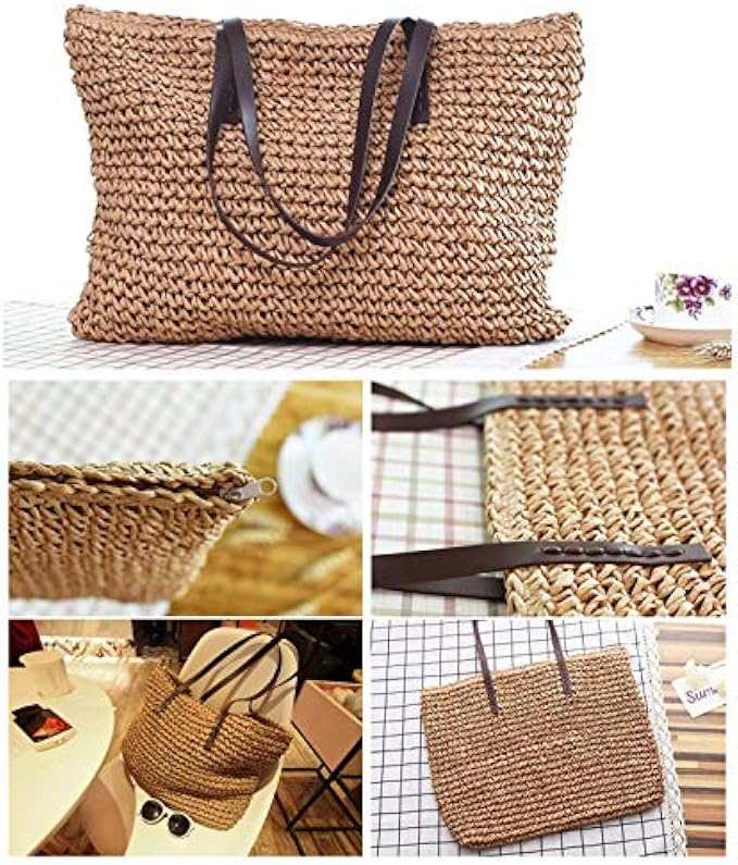 Ayliss Women Straw Woven Tote Large Beach Handmade Weaving Shoulder Bag Purse Straw Handbag