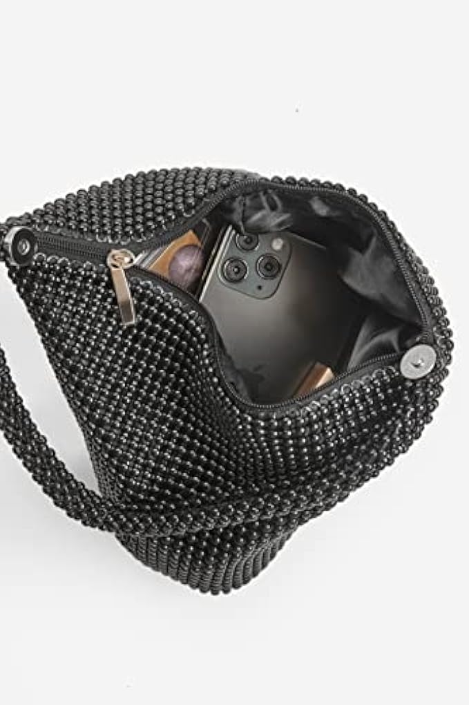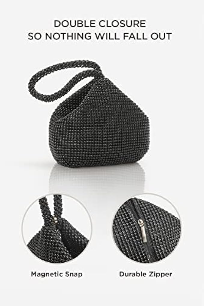 Features: Fully decorated with sparkling rhinestone crystals, combination of zipper and magnetic snap design makes it more convenient to use. This evening bag will make you a dazzling one on every occasion.