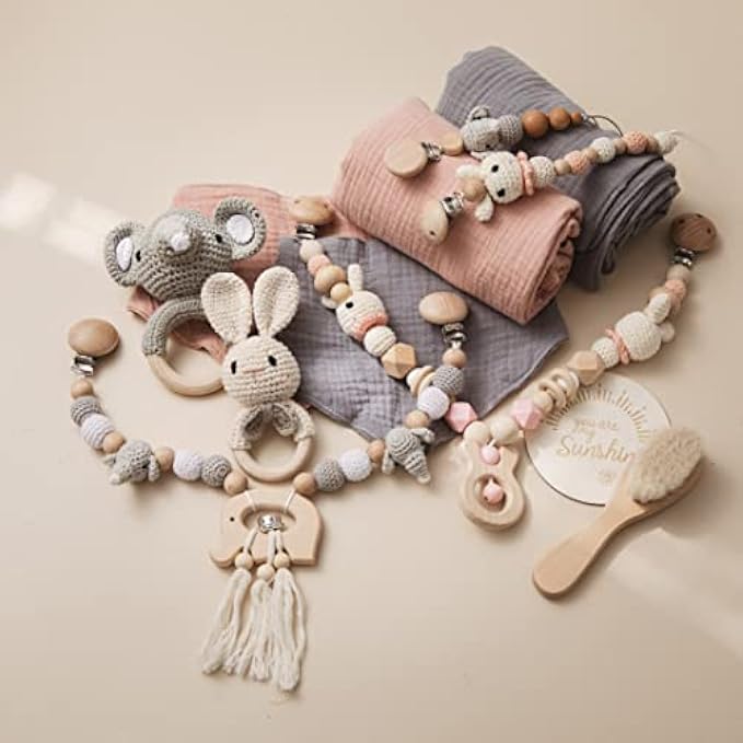 Safe Delivery Option – Every gift set is packaged carefully in its own box to ensure it arrives in perfect condition. All material of this item are made of natural materal, such as : organic beech wood, food grade silicone and cotton, baby can touch them without worrying about safety. Baby's safety is our primary concern.