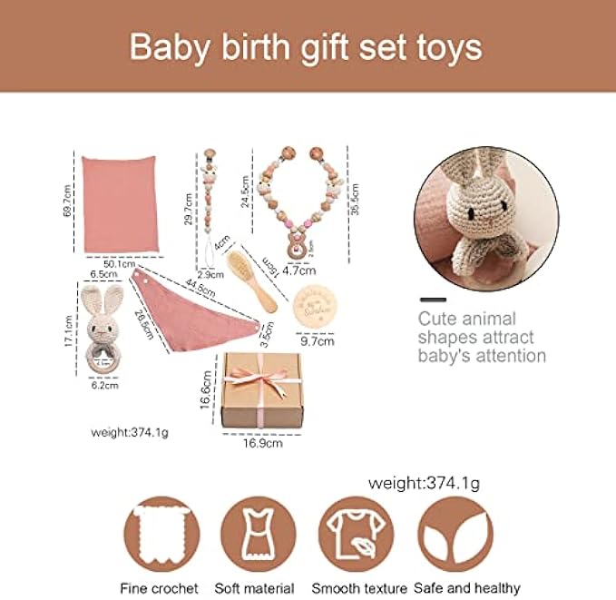 Thoughtfully Put Together – The gift box can be used for bathing (bath towel, brush), keaping cleaning(pacifier clip), traveling(pram chain), taking pictures (card), and playing with (rattle). Use it flexibly, let the baby get better care!