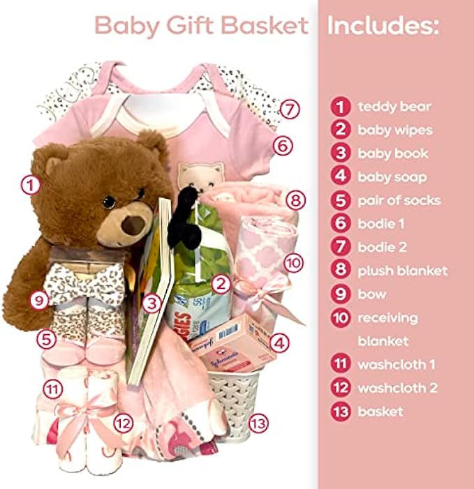 Baby Girl Gift Basket Set Great for Newborn Essentials, New Baby Gift Basket Kit, Baby Shower Gifts, Welcome Home Bundle for Girls, Gender Reveal, Congratulations to New Mom, New Baby Registry Box