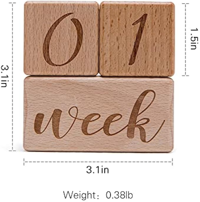 【Package】 You will get a 6-piece set of age blocks with a cloth bag. The set contains 4 cubes and 2 cubes. The wooden blocks contain "weeks", "months", "years" and a few numbers that may well suit your needs.
