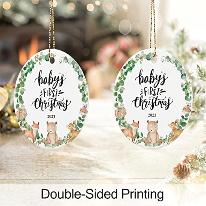 Wonderful Christmas Ornament- Babys first christmas ornament 2023 perfect decoration to holidays in home. Hang the Our Baby's first christmas ornament 2023 on the window,wall,Christmas tree,enhancing your holiday decor.and double-sided printing can see its beauty from any angle.