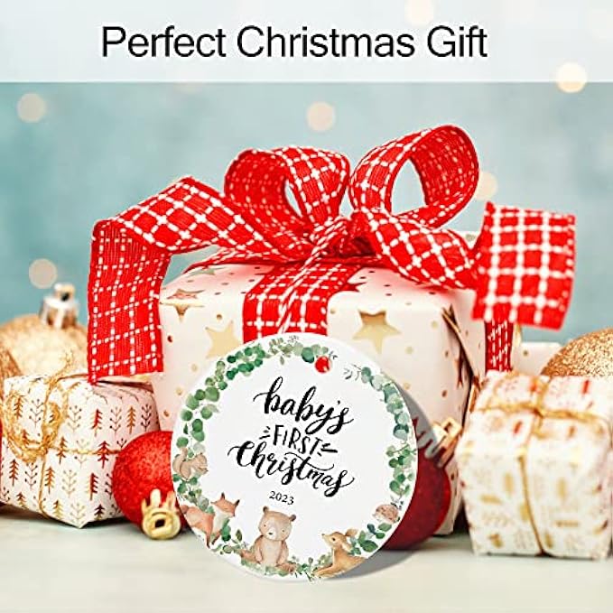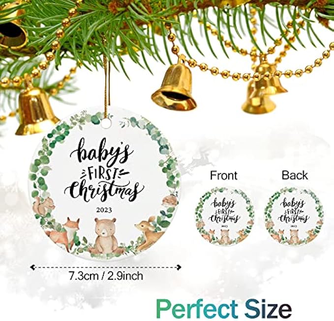 Suitable Size - The size of the baby's 1st Christmas ornament is 2.9 x 2.9 inches. And comes with attractive gift box and gold hanging string, easy for you to give the babys Christmas presents gifts.