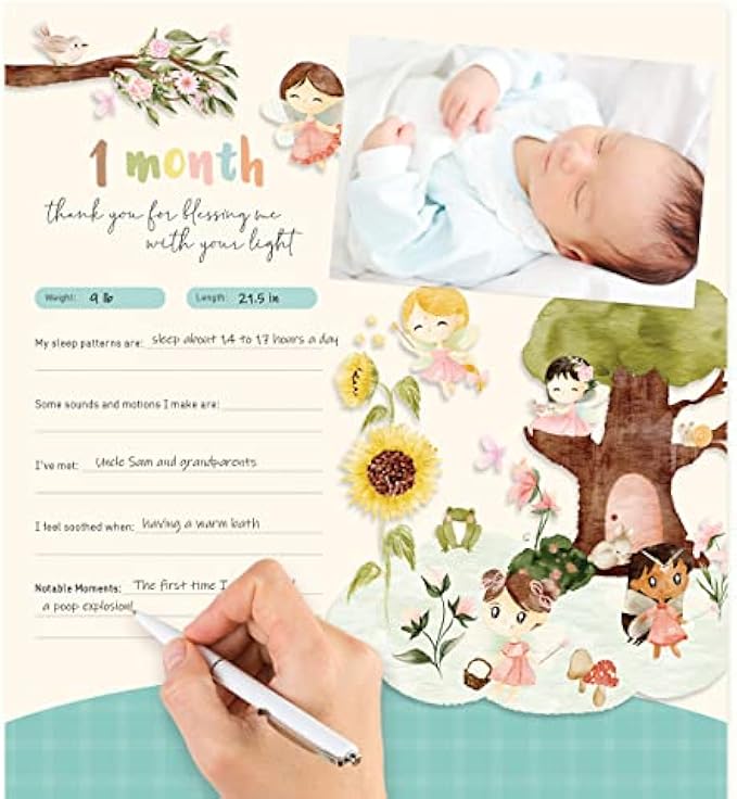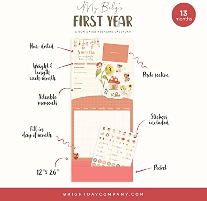 Baby's First Year Calendar by Bright Day - 1st Year Tracker - Journal Album to Capture Precious Moments - Milestone Keepsake for Baby Girl or Boy, Fairy