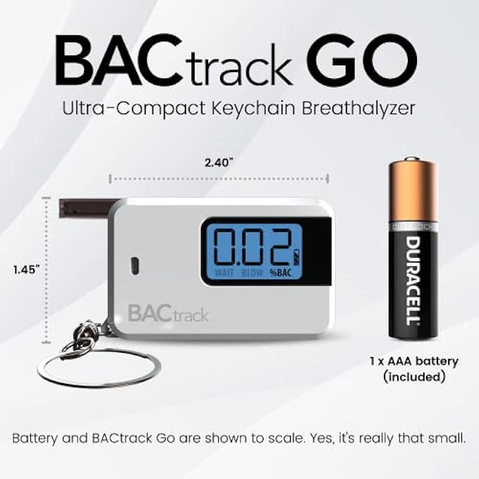 TAKE IT WITH YOU ANYWHERE - The ultra-compact BACtrack Go breathalyzer keychain easily fits in a pocket or purse, making it a great portable breathalyzer for any occasion.