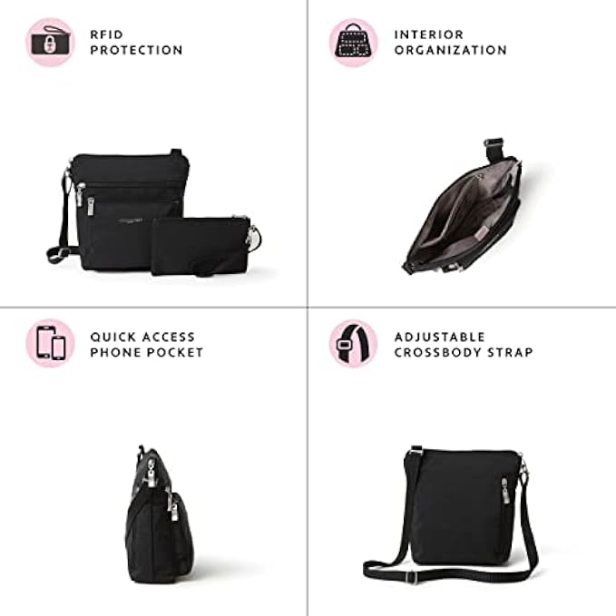 PRACTICAL AND STYLISH: Baggallini’s pocket crossbody bag brings you a convenient, hands-free design in a stylish, modern shape. Extra pockets help you stay organized, while the lightweight nylon material stays comfortable all day on the go.
