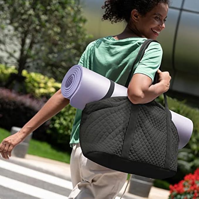LARGE TOTE BAG: Spacious compartment can hold your clothes, cosmetics, documents, supplies and other items you need. Side easy access pockets for your water bottle, umbrella, etc.
