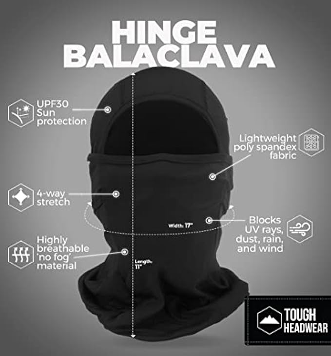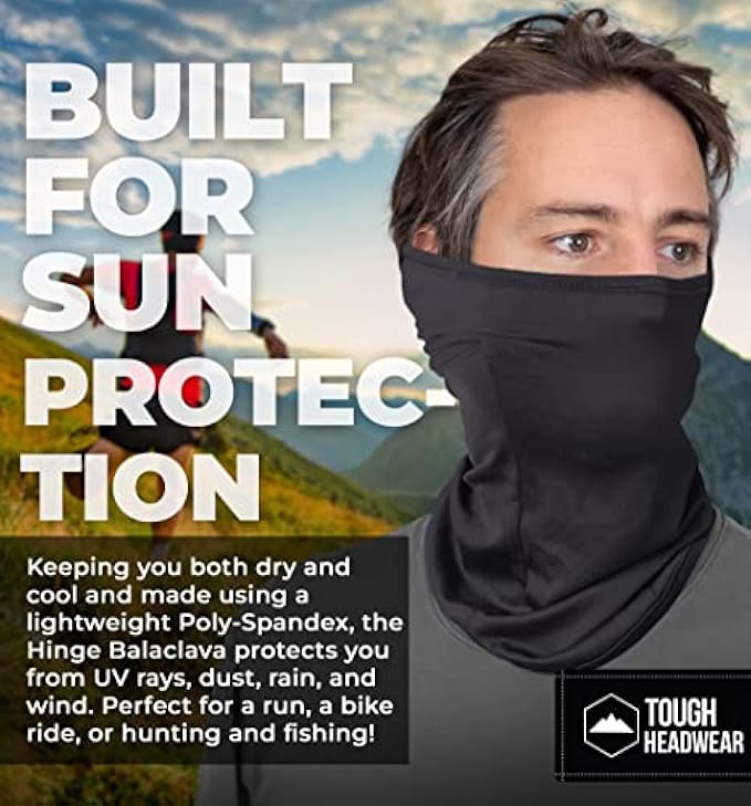 LIGHTWEIGHT SUMMER PROTECTION: The Hinge Balaclava is a high-performance, lightweight balaclava summer-ready that blocks out UV rays, dust, and wind while keeping you cool and comfortable. The lightweight, 92% Polyester and 8% Spandex construction of this balaclava makes it perfect for summer activities like hiking, running, cycling, fishing, and motorcycling.