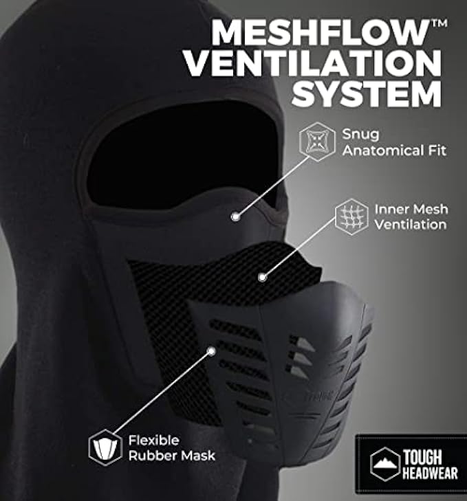 • BREATHE EASIER: It may be warm as can be, but our ninja face mask is deceptively lightweight and breathable. You can count on its mesh and rubber center panel to allow air to pass in and out of your breathable balaclava so that your breath and sweat will exit the premises before you feel any moisture against your skin — and before your goggles or glasses fog up.