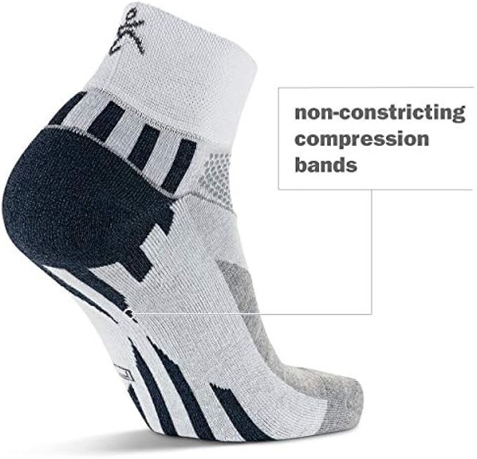 • Achieves quarter running sock non-slip security with non-constricting compression sock bands.
