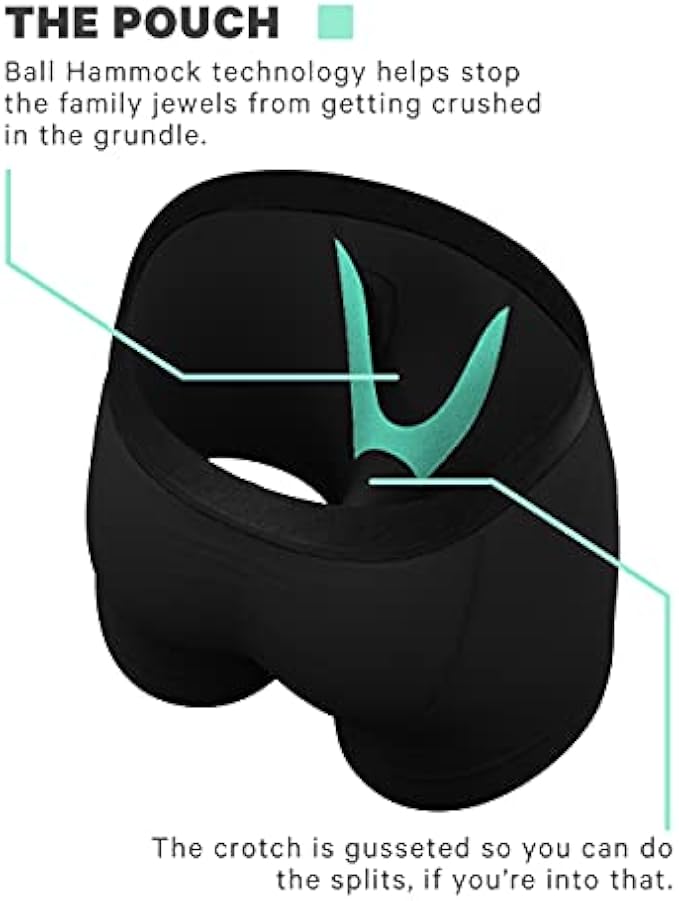 SUPPORTS THE FAMILY JEWELS - our proprietary pouch underwear for men provides all day comfort, eliminates the need for adjustments, and keeps your goods off your legs