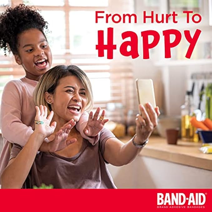 • Band-Aid Brand Adhesive Bandages come in a box with an assortment of sizes and fun character designs great for minor wounds and suitable for young kids