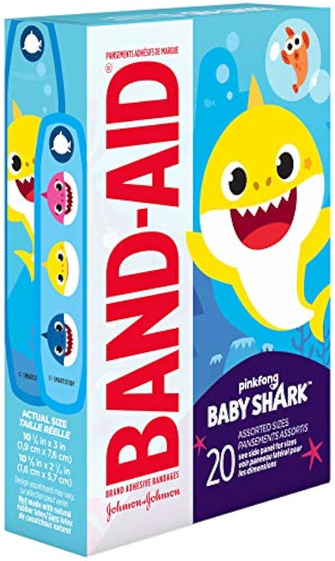 Band-Aid Brand Adhesive Bandages for Minor Cuts & Scrapes, Wound Care Featuring Pinkfong Baby Shark Characters for Kids and Toddlers, Assorted Sizes 20 ct