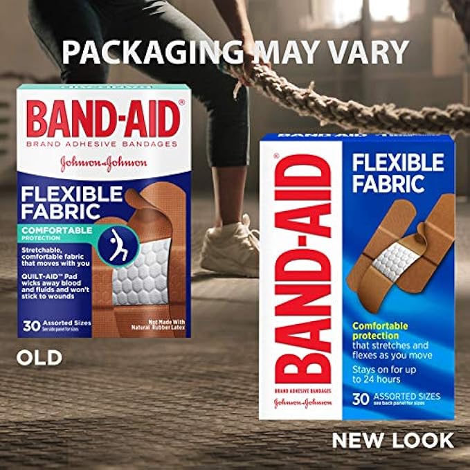 Band-Aid Brand Flexible Fabric Adhesive Bandages for Comfortable Flexible Protection & Wound Care of Minor Cuts & Scrapes, with Quilt-Aid Technology to Cushion Painful Wounds, Assorted Sizes, 30 ct