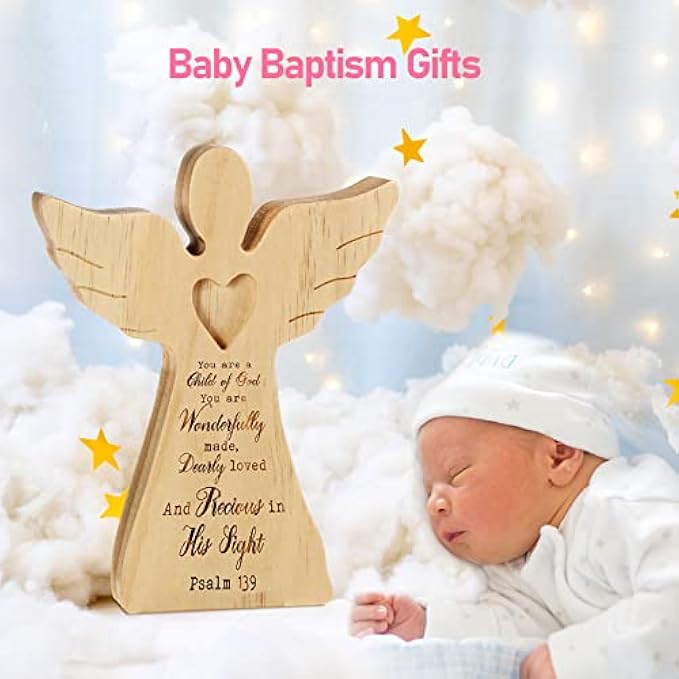 Baptism Gifts for Girl Boy, Baby Christening Gifts for Girls and Boy, Baby Gifts for Girls Boys, Confirmation Gifts for Boy Girl from New Parents, Wooden Angel Decorative Plaques