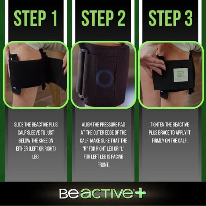HOW DOES BEACTIVE PLUS WORK: This pressure point brace is easy to use! Slide the brace just below the knee on either your right or left leg, then align the pressure pad at the outer edge of the calf, with the “R” for “Right” or the “L” for “Left” leg facing the front, then tighten to apply firm pressure on the calf. The acupoint pressure pad applies gentle targeted compression to the trigger point just below the knee to provide relief.