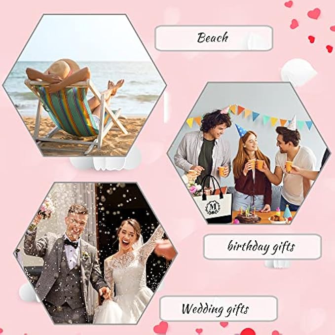 canvas Imported Cotton lining Zipper closure Hand Wash Only Classic Monogram Embroidery Font & Personalized Gifts: Unique personalized gifts bag is individual using a high thread density monogram in a classic black font. Allowing you to give your gift a personal touch.So the monogram large tote bags for women could be as a perfect birthday gift for women,her teacher, bride,hostess, her mom/mother,her sister, friends. Also, the gifts bag for women who have everything can be an adorable way to thank your bridesmaids, maid of honor, mom of the bride/groom. Inner Zipper Pouch & Long Handles with Ribbon & Letter Outer Circle Wreath: Our teacher bag has an inner zipper pouch. The zipper pouch makes it easy to store phone, keys. And makes it easy access. The handles of our birthday gifts for women are tied with ribbon, And there is a circle of flowers and leaves outside the embroidery letter. They make our teacher gifts look elegant. Long handles allow for putting on the shoulder or carry in your hand. Large capacity & Durable: Our personalized large tote bag for women is 17" wide + 12.5" tall + 6.7" bottom gusset with a 24" reinforced canvas handle. Large enough to hold all your daily accessories including clothes, snacks. The double stitches make our large tote bags for women strong enough to hold many items without broken. The 'X' stitches on the joint part make the long handles strong enough. The long shoulder straps fit your shoulder comfort. Multi Purpose & Multi Occasions: Our thank you gifts tote bag for women is great for many items, like laptop, towels, water bottle, clothes etc. The thank you gifts for women is suitable for many occasions, such as beach, wedding, work, bridal shower, women gifts(mom), sister gifts,birthday gifts, Mother's Day gifts, Teacher's Day gifts, yoga, grocery shopping, etc. Hand Wash & Reusable:Our teacher gifts for women is made of 100% 13oz natural cotton canvas. Heavy canvas on the outside, and a moisture resistant lined interior. The gifts for women who have everything is easily hand-washable and long-lasting. You can use this big women tote bag for long time and it can also help you to reduce your impact on the environment. (Note: machine wash is not suggested.)