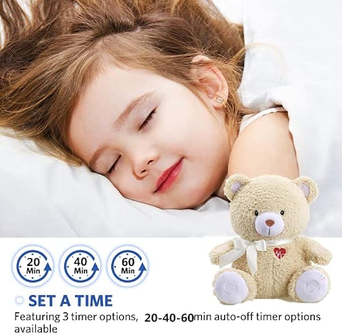 BEREST Sleeping Bear Baby Sleep Soother- Mom's Heartbeat White Noise Machine Infant Stuffed Animal Bear Toy Sleeping Aid, Nursery Decor with Baby Cry Sensor, Night Light, 9 Soothing Sounds Therapy