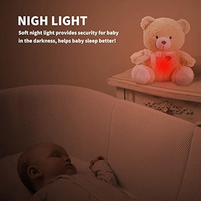 4.【Soft Night Light】BEREST Sleeping Bear with a soft light on the tummy, provides security for baby in the darkness, helps baby sleep better. Perfect nursery baby shower gift for newborn baby or infant