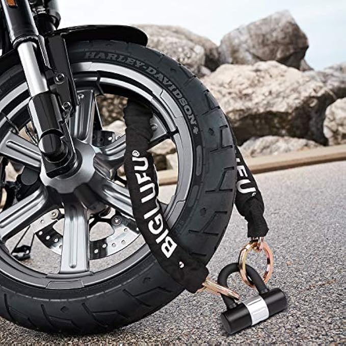 • ★★STOUT U LOCK & 4 ERGONOMIC KEYS: Our chain lock comes with 1 sturdy U lock made of 16mm hard zinc alloy shackle and thick PVC coating, strong resists cutting and leverage attacks, ensures your motorcycle safety. 4 ergonomic keys are made of hard and durable stainless steel, never bent or twist. Anti-theft lock cylinder design, please insert the key all the way, otherwise it would be stuck or fail to unlock.