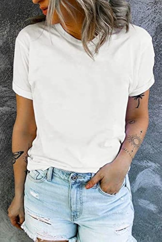 The tee features short sleeve, rolled cuffs makes it more stylish, Perfect for to match your favorite jeans, under sweater, blazer, dress or jacket