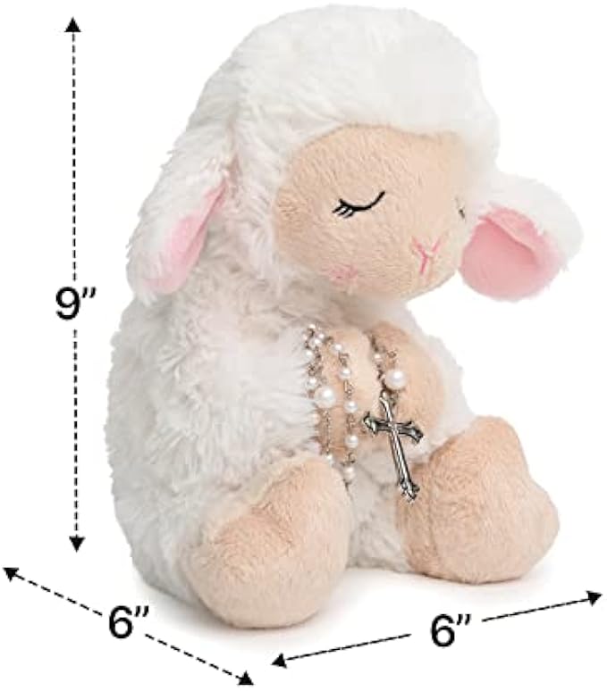 Features: Super soft, cuddly and plush blessed lamb sits 8.5 inches tall with its hands held together in prayer. Our lamb gives a calming presence that makes prayer inviting and fun for girls and boys.