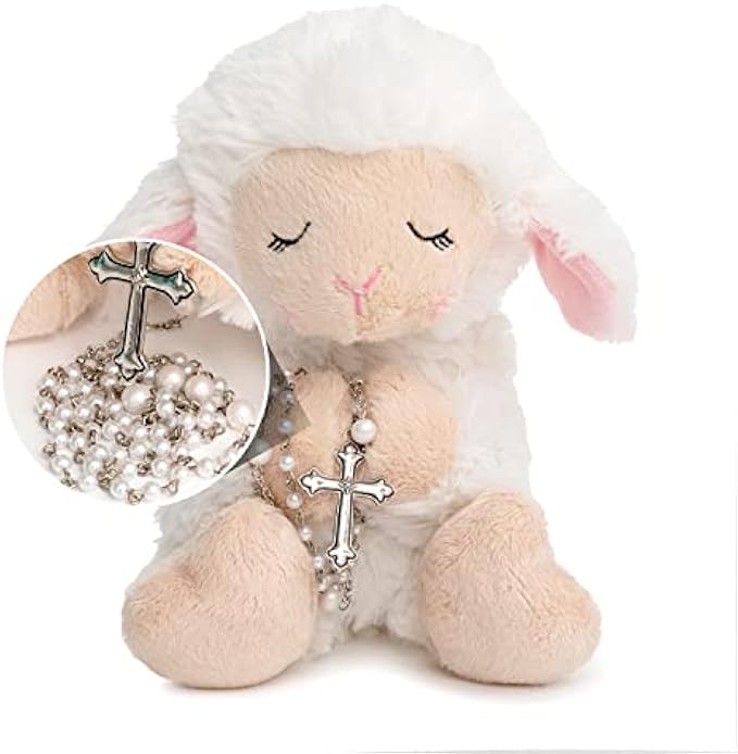 Gender Neutral Stuffed Lamb : ideal rosary beads Catholic present for a first communion gift for girls, first communion gifts for boys, Catholic baptism gifts for boys, or christening gifts for girls.