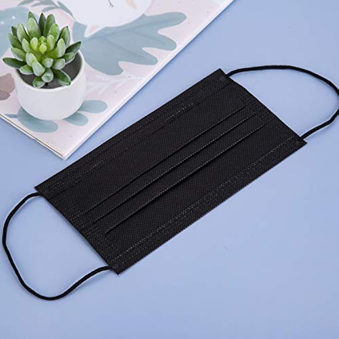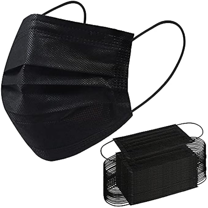 Borje Disposable Face Mask, 100 PCS Black Masks, 3 Ply Protection Face Masks