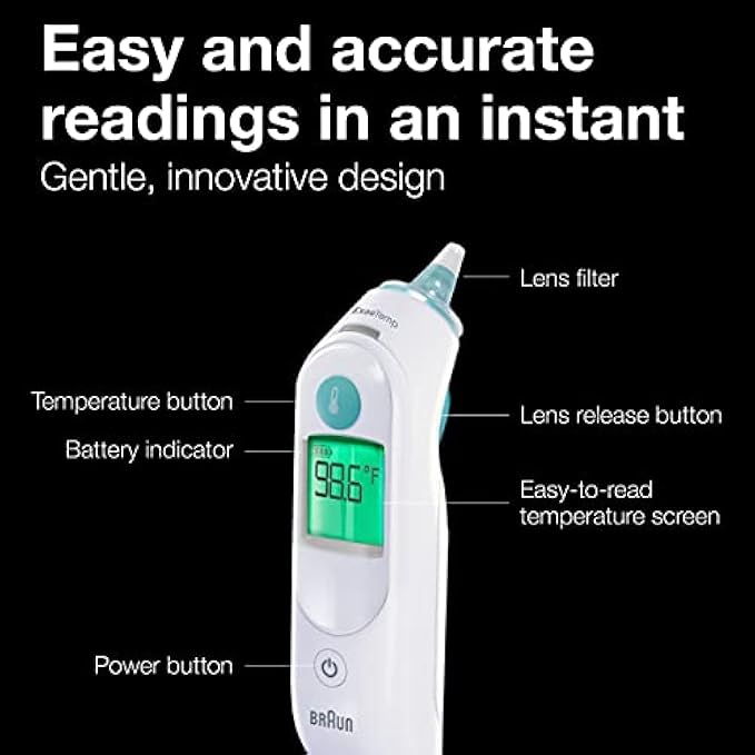 RELIABLE RESULTS – Get quick, reliable results with the Braun ThermoScan 6 Digital Thermometer. This ear thermometer has an easy to read digital display, color-coded temperature reading and a pre-warmed tip to ensure accurate readings